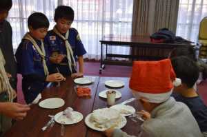 ビーバー隊の発表です。みんなで「あわてんぼうのサンタクロース」を歌いました