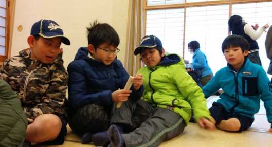 食べ終わった後は全体ゲームの予定でしたが、雪がまだ残り、グランドがぬかるんでいるので中止となり