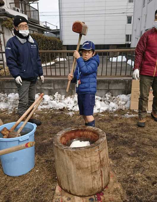 ほかの子も元気に餅をつきました。