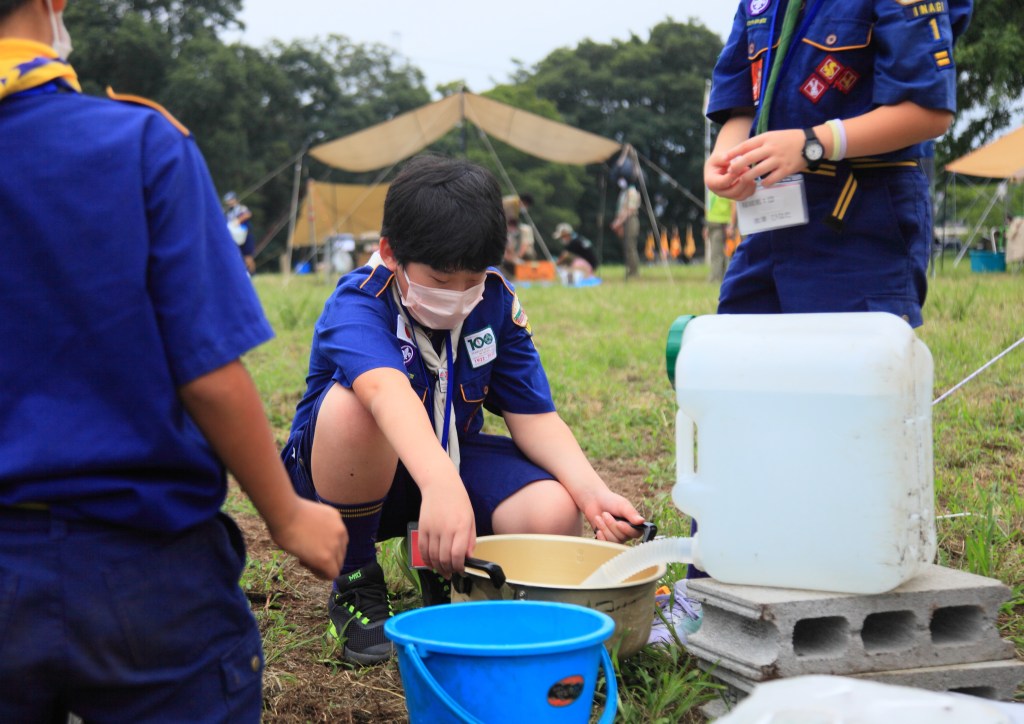 おやつの後は、前回に続いて竹馬にチャレンジです。今日の練習でなんとか乗りこなせるようになったスカウトもいます。継続は力です。